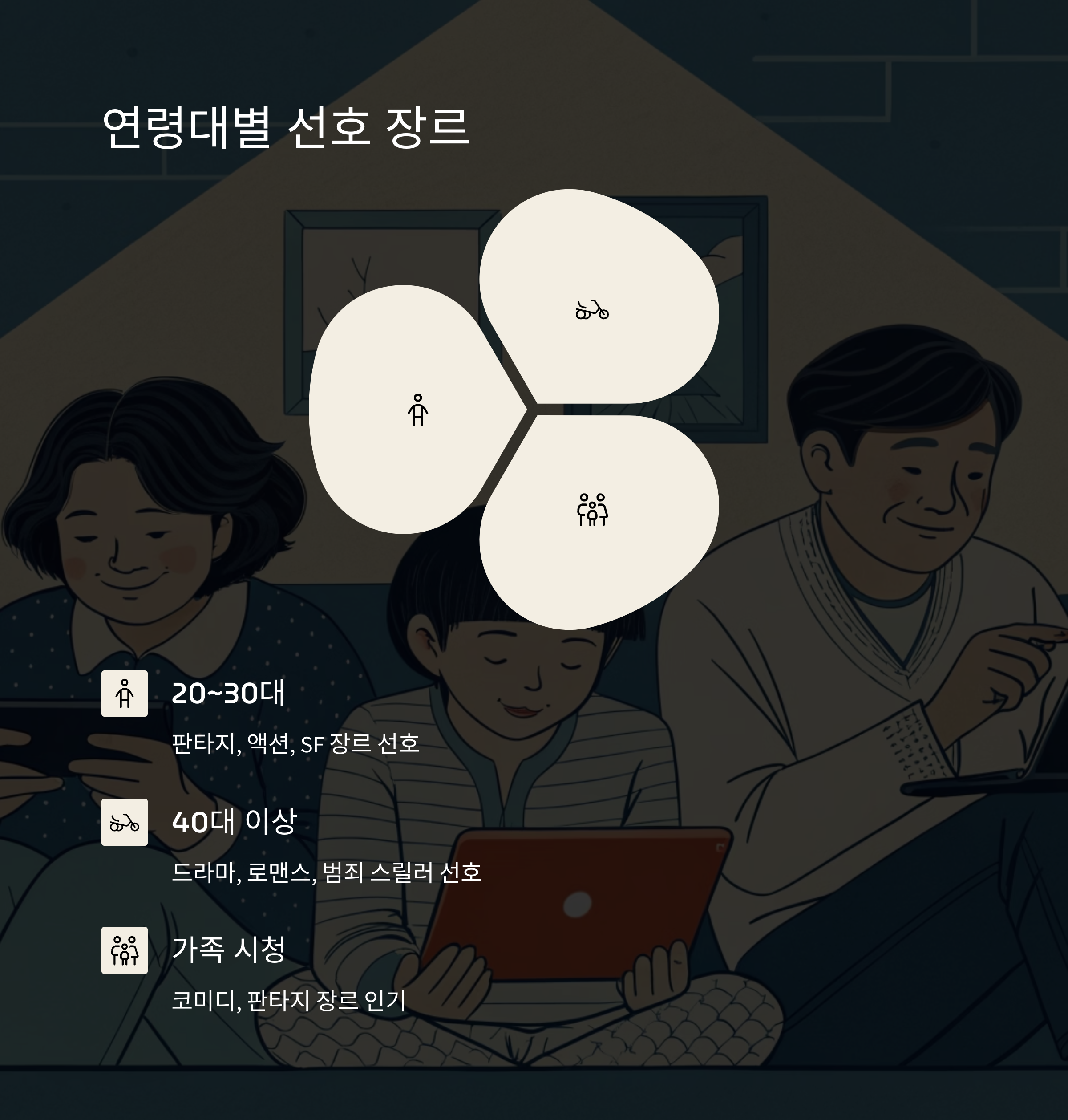 넷플릭스 주간 순위를 통해 드러난 시청자들의 연령대별 선호 장르를 살펴보면, 20~30대 젊은 층은 판타지와 액션, SF 장르에 특히 몰입하는 경향이 강합니다. 반면 40대 이상 시청자들은 드라마와 로맨스, 범죄 스릴러를 선호하는 모습이 뚜렷하게 나타났어요.
