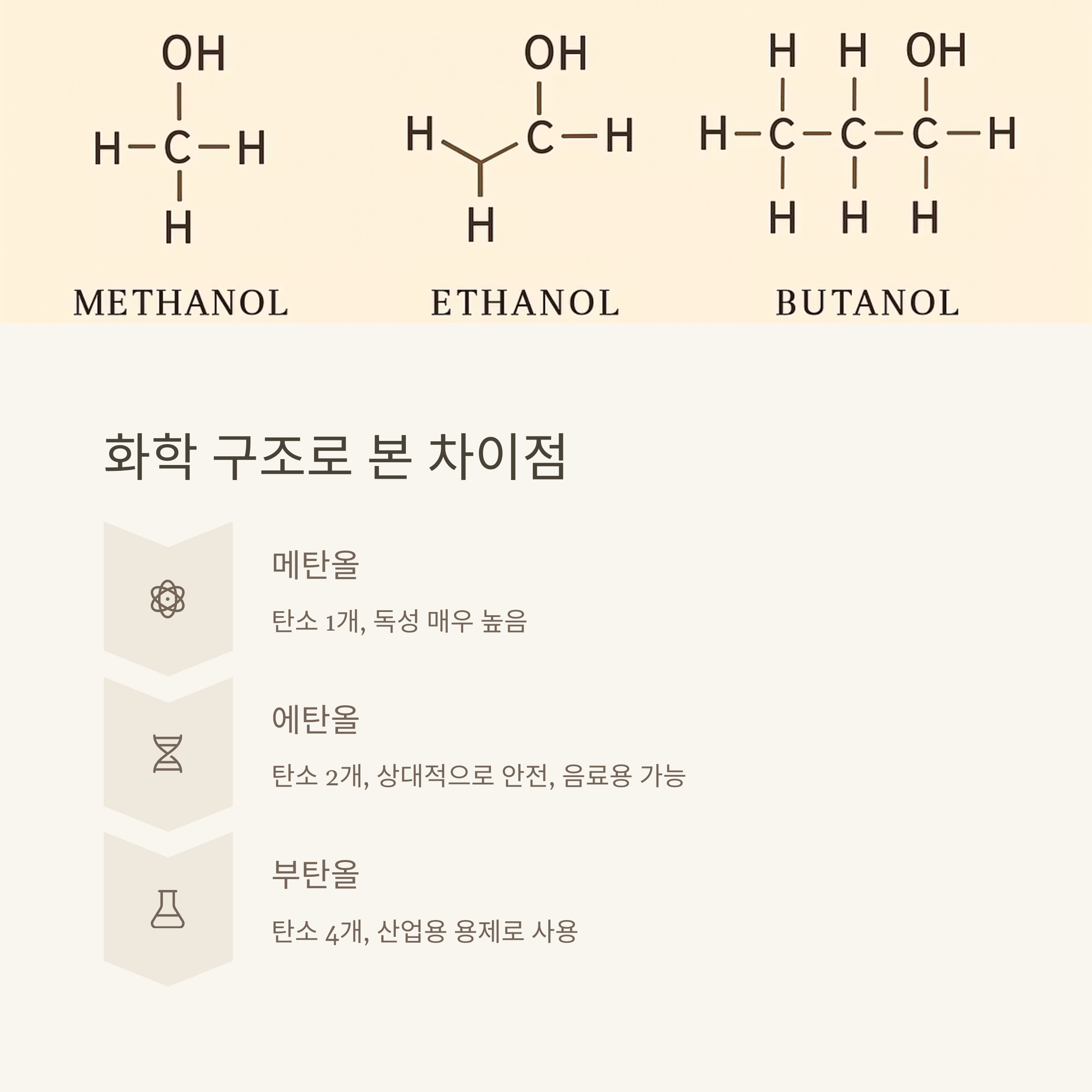 알코올이라고 하면 보통 '술'을 떠올리게 되죠. 그런데 사실 알코올은 그보다 훨씬 넓은 개념이에요. 과학적으로는 탄소 사슬에 수산기(-OH)가 붙어 있는 유기 화합물 전반을 가리켜요. 메탄올(CH₃OH), 에탄올(C₂H₅OH), 부탄올(C₄H₉OH) 같은 것들이 대표적이죠. 각각 특성과 용도가 달라서, 어디에 쓰이느냐에 따라 안전성도 달라진답니다.