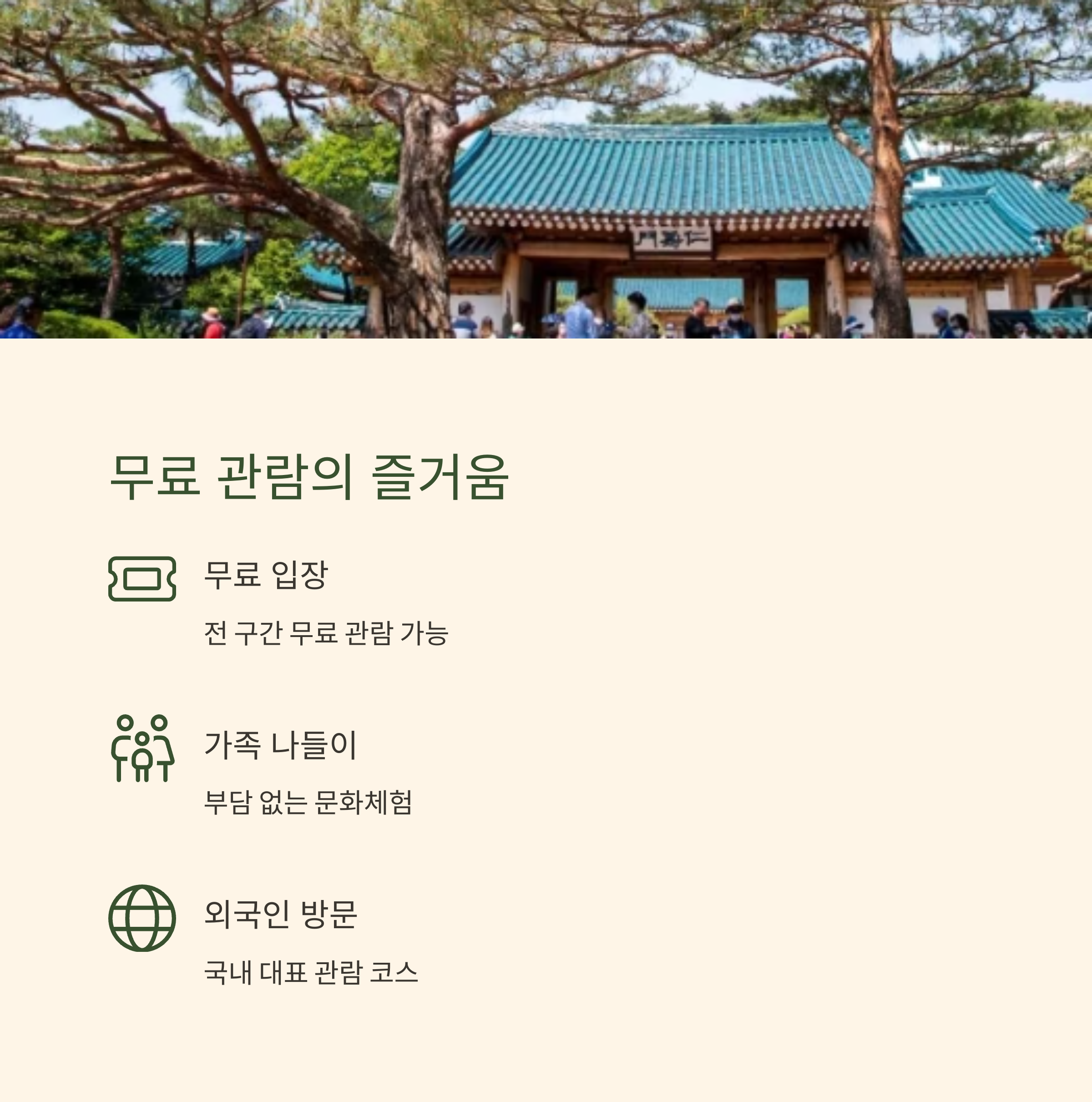 이 때문에 문화체험이나 가족 나들이, 외국인 방문 등 다양한 목적으로 부담 없이 참여할 수 있는