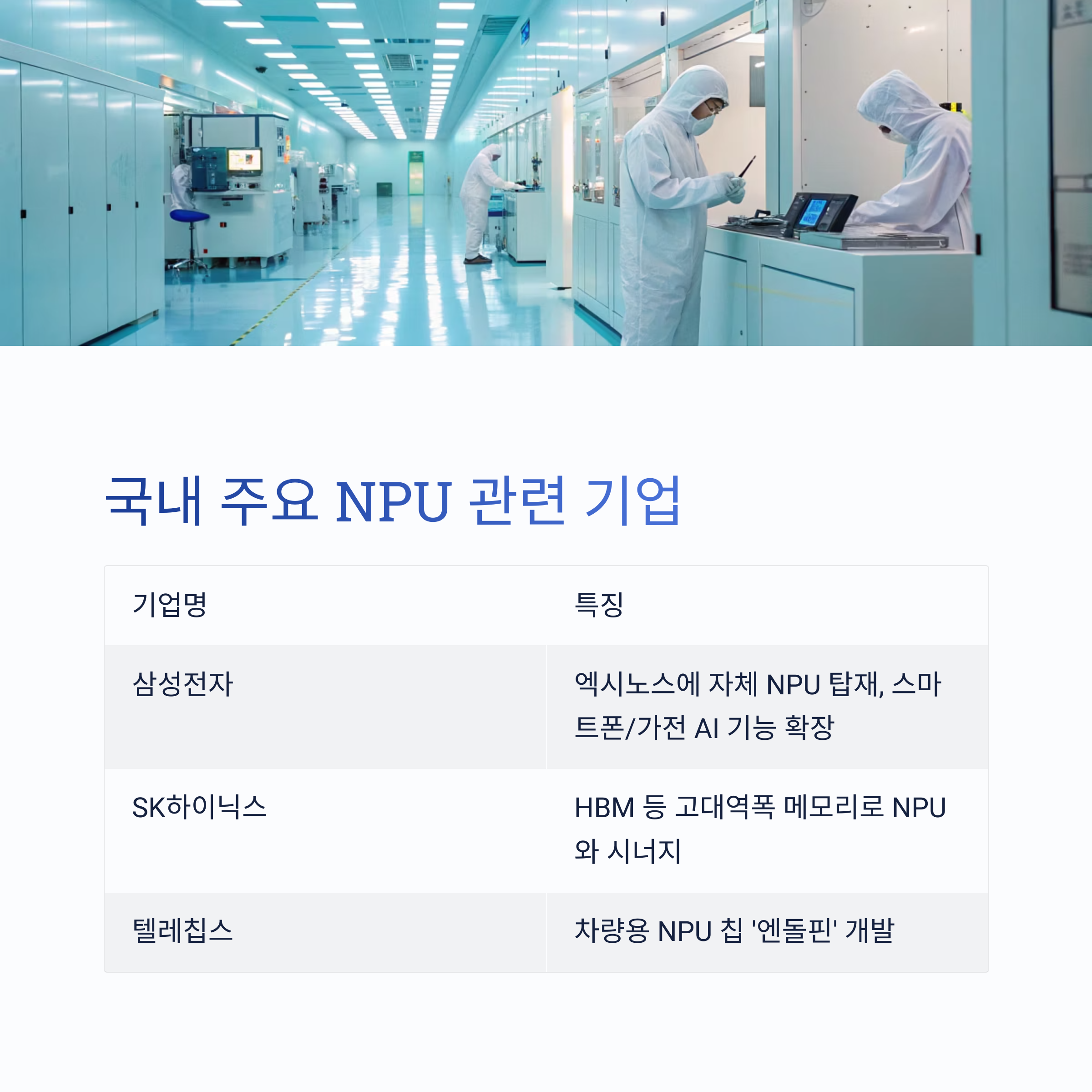 | SK하이닉스 | HBM 등 고대역폭 메모리로 NPU와 시너지 |