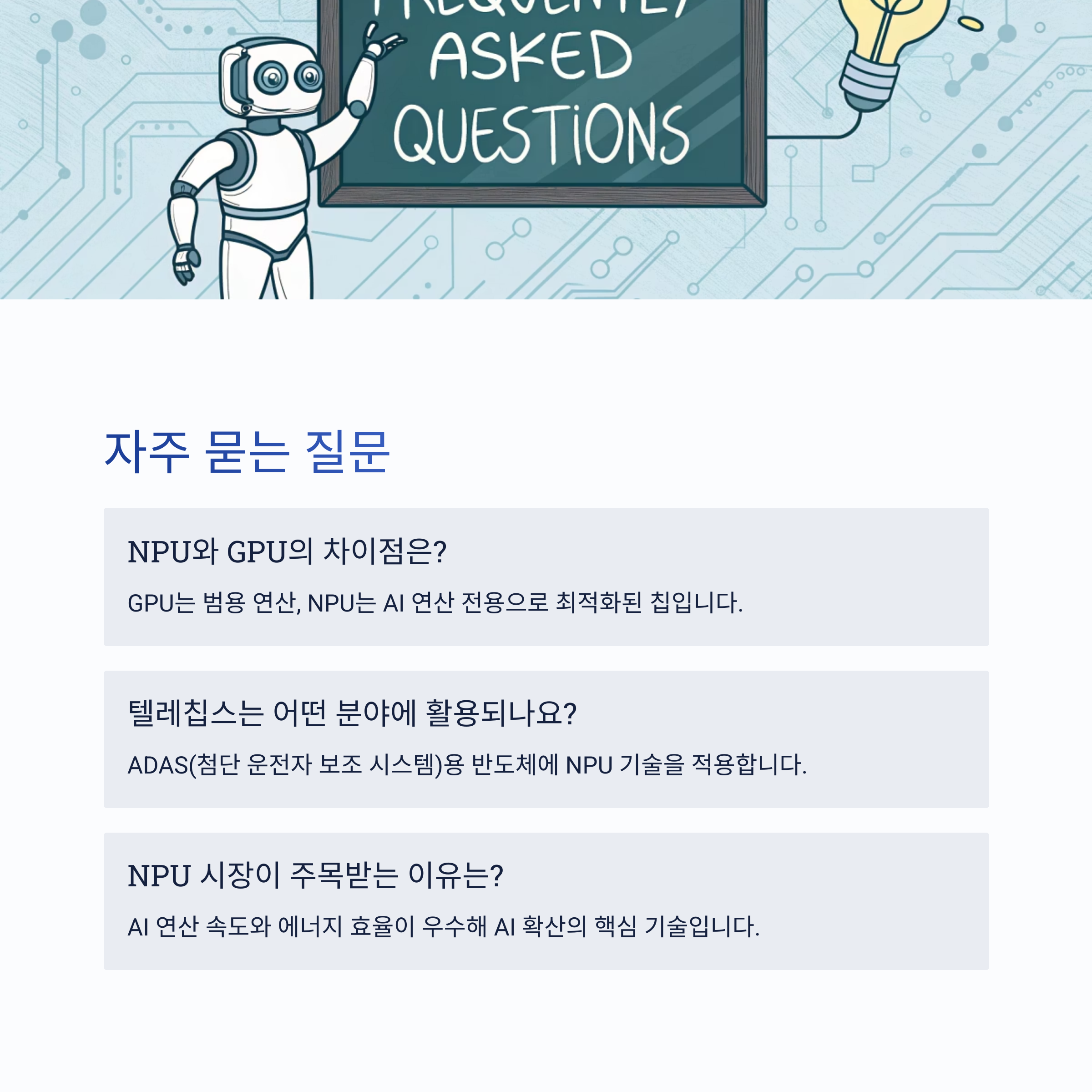 AI 연산 속도와 에너지 효율 측면에서 기존 칩 대비 우수해, AI 확산의 핵심 기술로 꼽힙니다.